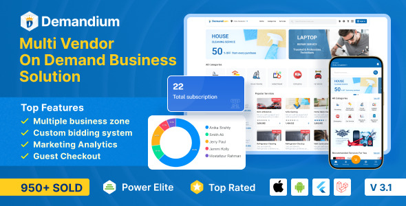 Demandiumv.3.3 is a complete on-demand booking service platform developed using Laravel and the Flutter Framework. You can easily build a service marketplace.